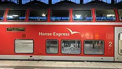 RE 80 Hamburg Hauptbahnhof – Ahrensburg – Bad Oldesloe – Reinfeld (Holst) – Lübeck Hauptbahnhof 104 60 min Twindexx Vario (class 445) DB Regio Nord
