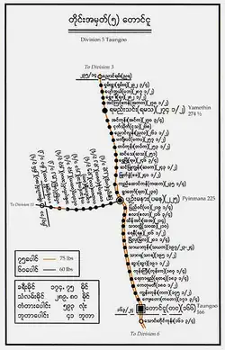Work on the standard gauge line from Kunming, China to Kyaukphyu started in 2021, with a station at Mandalay. Work was resumed in 2023. [13]