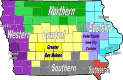 - Plains: Iowa, Kansas, Minnesota, Missouri, Nebraska, North Dakota, and South Dakota