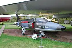 • Gnat T1 XP505 at Science Museum, Wroughton Aerodrome, Wiltshire[41]