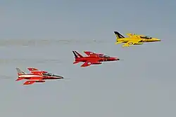 The three Gnats of The Heritage Aircraft Trust display at the 2014 RAF Waddington International Airshow