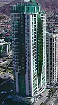 This list of tallest buildings in Bolivia ranks the tallest skyscrapers and buildings in the country, either built or under construction. Currently, the tallest building in Bolivia is Green Tower in La Paz, at 180 m (590.551 ft ), followed by Towers C and D of the Torres del Poeta complex with a maximum height of 178 m (583.99 ft). La Paz has the highest concentration of skyscrapers in the country, followed by Santa Cruz de la Sierra and Cochabamba. The tallest building in Santa Cruz is the Green Tower (Tower 1), at 140 m (459.318 ft), and the Platinum II Tower, at 136 meters tall, both located in Santa Cruz de la Sierra. By 2025, Bolivia is estimated to have 37 buildings over 100 meters tall, four skyscrapers over 150 m (492.126 ft), and several projects over 100 meters tall. The first building to reach 100 m (328.084 ft) was the Edificio Alameda, completed in 1967, located in La Paz. This list of tallest buildings in Bolivia ranks the tallest skyscrapers and buildings in the country, either built or under construction. Currently, the tallest building in Bolivia is Green Tower in La Paz, at 181 metres tall, followed by towers C and D of the Torres del Poeta complex with a maximum height of 178 metres tall. La Paz has the highest concentration of skyscrapers in the country, followed by Santa Cruz de la Sierra and Cochabamba. The tallest building in Santa Cruz de la Sierra is the Green Towers (Torre 1), with a height of 140 meters, and the Platinum II Tower, with a height of 136 meters, both located in Santa Cruz de la Sierra.