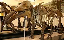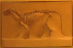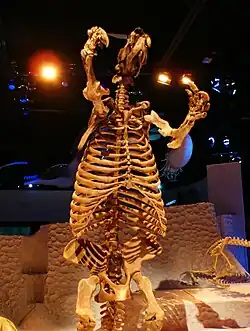 Mounted fossilized skeleton of the Miocene-Pliocene ground sloth Thinobadistes - †Thinohyus