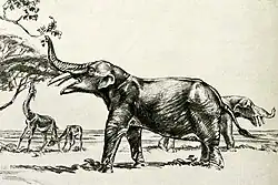 Life restoration of the Miocene elephant relative Amebelodon. Margret Flinsch (1932). - †Amebelodon fricki – type locality for species