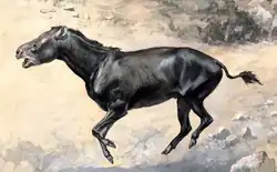 Mounted fossilized skeleton of the Miocene horse Acritohippus - †Acritohippus isonesus