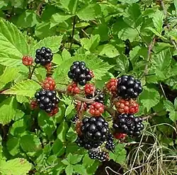 Leaves and fruit of a living Vitis, or grapevine - †Vitis magnisperma