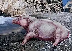 Life restoration of the Oligocene baleen whale Aetiocetus - †Aetiocetus cotylalveus – type locality for species