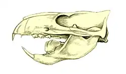 Fossilized skull of the Miocene saber-toothed cat Amphimachairodus - †Amphimachairodus coloradensis – or unidentified comparable form