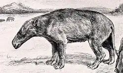 Life restoration of the Miocene camel Aepycamelus, or the long-necked camel. Heinrich Harder (1920). - †Aerugoamnis – type locality for genus