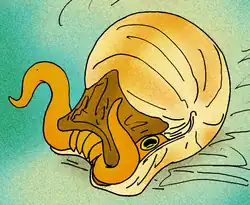 Life restoration of two species of the Late Triassic ammonoid cephalopod Arcestes - †Arctomeekoceras