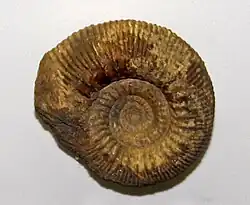 †StephanocerasFossilized shell of the Middle Jurassic ammonoid cephalopod Stephanoceras - †Stephanoceras skidegatensis – or unidentified comparable form
