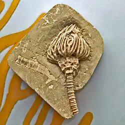 †ActinocrinitesFossilized calyx and partial stem of the Devonian-Permian crinoid ("sea lily") Actinocrinites - †Actinocrinites gibsoni