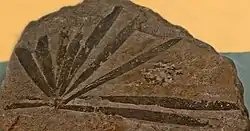 Fossil of the Carboniferous horsetail relative Annularia - †Annularia acicularis