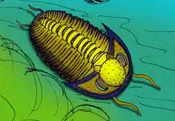 Fossil of the Cambrian trilobite Tricrepicephalus - †Tricrepicephalus walcotti