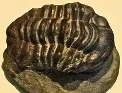 Fossil of the Cambrian trilobite Tricrepicephalus - †Tricrepicephalus cedarensis