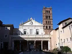 One of the city's top attractions, the flight of 138 stairs is the biggest in Europe.[11] They are topped by the Trinita dei Monti church, and below there is the large Piazza di Spagna. The Piazza di Spagna is also a major shopping destination in the city, and hosts several designer boutiques such as Missoni. |