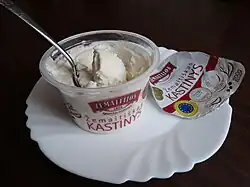 Žemaitiškas kastinys EU/UK Žemaitiškas kastinys is a sour cream, which is complemented with butter (6-7%), sour milk (5%) and salt.[40]