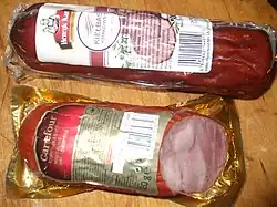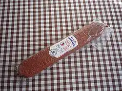 Czech Republic and Slovakia Tradiční Lovecký salám / Tradičná Lovecká saláma EU/UK Tradiční Lovecký salám (Czech) / Tradičná Lovecká saláma (Slovakian) is a fermented meat product produced from mainly from pork, containing also beef. The products is produced in rectangular blocks.[3]