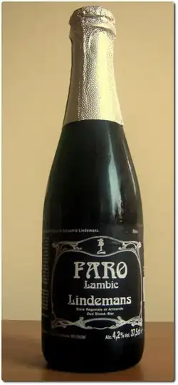 Faro Belgium EU/UK Historically, a low-alcohol, sweetened beer made from a blend of lambic and a much lighter, freshly brewed beer to which brown sugar (or sometimes caramel or molasses) was added. The fresh beer was referred to as meertsbier, and was not necessarily a lambic.[83] Sometimes herbs were added as well. The use of meertsbier (or water) and of substandard lambic in the blend made this a cheap, light, sweet drink for everyday consumption. The 19th century French poet Charles Baudelaire commented on faro's disagreeable aftertaste, "It's beer that you drink twice", believing that the Faro in Brussels was brewed from the waters of a river (the Senne or Zenne) that was also used as a sewer.[84]