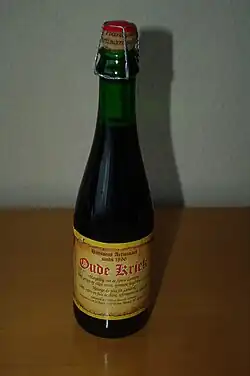 Vieille Kriek / Vieille Kriek-Lambic / Vieille Framboise-Lambic / Vieux fruit-Lambic / Oude Kriek / Oude Kriekenlambiek / Oude Frambozenlambiek / Oude Fruit-lambiek EU/UK According to the application, "Vieille Kriek or Vieille Kriek-Lambic results from a blend of Lambics in which the weighted average age is one year or more and the oldest component of which has been aged in wooden barrels for at least a year".[11]