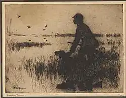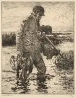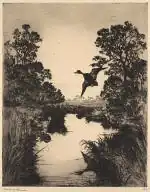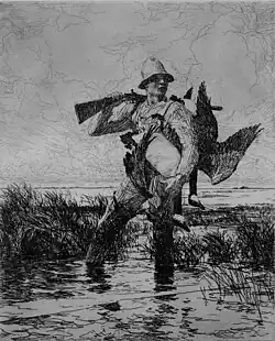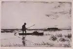 etching/print | 1914 | 9.8 in x 10.9 in (24.9 cm x 27.7 cm) | Scene: waterfowl hunter wading through marsh. | |