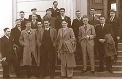 The efforts were successful – the Lithuanians became the champions of Europe for the first time, defeating all their opponents and with Talzūnas being picked as the tournament's most valuable player. Following the final victory over Italy, the famous Lithuanian tenor Kipras Petrauskas even interrupted his performance at the State Theatre to joyfully announce the triumph of the national basketball team. The crowd then rose to their feet and together sang the Lithuanian anthem.[17] The team returned to a warm reception, with thousands gathering at a train station in a way Kriaučiūnas compared to "like we, here in America, greet the president."[18] Basketball regained its ground immediately, and had its popularity rise abruptly, especially among students. Gymnasium teams from almost all counties competed in student games, teams were assembled in firms and basketball courts appeared all around the country. According to future player Stepas Butautas, "In every yard hoops are being made from barrels. Children, teenagers are throwing balls into them, others – even a sock crammed with clouts. Our Veršvai Primary School teacher K. Požemecka built two poles, made hoops from a willow and said: 'We will play basketball'."[19] Future team coach Vladas Garastas added that "as kids we started using a barrel to make a hoop. We didn't have a ball, we stuffed in grass or whatever we could find".[20]