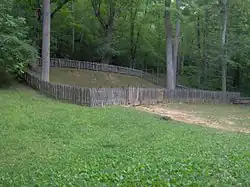 The Walker Sisters Place (sometimes referred to as the King-Walker Place after its primary builders) was the home of five sisters who refused to sell their 166-acre (0.7 km2) plot to the national park and maintained their traditional mountain life into the 1950s. In 1946, the Saturday Evening Post published an article on the Walker sisters that drew a flood of tourists to the area.[6] The "kitchen" part of the cabin was built in the 1840s by early settler Brice McFalls. The larger cabin was built in the 1850s by Wiley King. His sons completed the chimney, and his son-in-law, John N. Walker, built the porch and merged the larger cabin with the smaller McFalls cabin.[2] By 1921, the cabin and farm had passed to five of Walker's daughters—Margaret Jane, Polly, Louisa, Hettie, and Martha—who had lived on the land their entire lives.[6] The National Park Service assumed control of the land when the last of the Walkers died in 1964.[2]