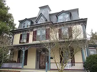 The Littleton T. Clarke House is a historic home located at Pocomoke City, Worcester County, Maryland, United States. It is a 2+12-story Second Empire–style frame house with a concave curved mansard roof constructed about 1860.[2]