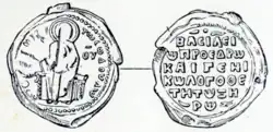 The genikon was responsible for general taxation and revenue, and also served as a court for financial cases.[1] As such, it broadly fulfilled the tasks of the earlier sacrae largitiones, although it was mostly derived from the "general department" of the praetorian prefecture.[2] The first attested logothetes tou genikou, the monk Theodotos, is mentioned in 692, but the post may have been instituted as early as 626.[3][1] The bureau of the genikon and its logothete remained one of the chief ministries for the entire middle Byzantine period (7th–12th centuries), with the 899 Klētorologion of Philotheos recording the position as ranking 33rd in the imperial hierarchy.[4] During the Komnenian period, its importance declined, but recovered under the Angeloi. Following the sack of Constantinople in 1204 and the dissolution of the Byzantine Empire, the office of the logothetes tou genikou was retained as a purely honorary title by the successor state of Nicaea and the restored Palaiologan Empire after 1261.[1]