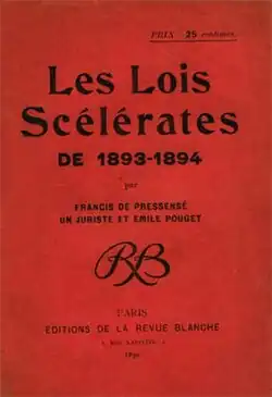 The critiques from Blum, de Pressensé, and Pouget gave the entire set of laws the name of Lois scélérates, and they have been known by this name ever since.[4]
