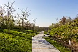 The London Blossom Garden is a memorial garden to honour the victims of the COVID-19 pandemic in London, England, planted near the London Stadium in the London Borough of Newham.[1][2] The memorial represents the 32 boroughs of London and the City of London by three circles formed of 33 blossom trees.[3] The blossom trees were chosen as the pandemic began in London in March 2020, in the springtime. It was planted by the National Trust and funded by Bloomberg L.P.[2]