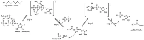 Figure 2. Mechanism of long chain fatty acyl-CoA synthetase.