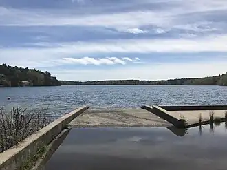 Long Pond is a 211-acre (0.85 km2) cold water pond in Plymouth, Massachusetts, east of Myles Standish State Forest, Halfway Pond and Round Pond, west of Route 3 at Exit 3 and The Pinehills, northwest of Bloody Pond, and north of West Wind Shores. The pond has an average depth of 46 feet (14 m) and a maximum depth of 100 feet (30 m). It is fed by groundwater and an inlet from Little Long Pond, and drains through the pond bottom. A paved boat ramp provided by the Public Access Board with ample parking spaces is easily accessible from Route 3. The Pond has a 50 hp limitation on boating.[1]