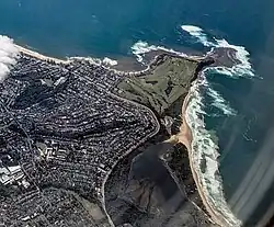 Long Reef is a prominent headland on the Northern Beaches of Sydney, Australia. Connected to the mainland by a tombolo, the reef has an extensive wave-cut platform. Long Reef is a popular recreational destination and is one of the more interesting geological areas in Sydney.[1]