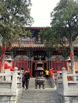 Xiangshan Temple is one of the earliest of the ten temples at Longmen. It is located in the midsection of the east hill. The name 'Xiangshan' is derived from the name of the spices "Xiangge" found extensively on these hill slopes. It was reconstructed some time in 1707, during the reign of the Qing dynasty, patterned on an old temple that existed there. Longmen Grottoes Administration, expanded the temple in 2002, by adding the "Belfry, the Drum Tower, the Wing Room, the Hall of Mahavira and Hall of Nine Persons, Eighteen Arhats, the Villa of Chiang Kai-shek and Soong Mei-ling". New additions included board walks, compound wall and a new gate from the southern end of the temple.[10]