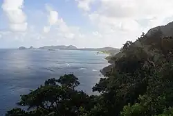 The lagoon is six kilometres long and 1.5 km wide and contains the largest of Lord Howe Island's coral reef system, assessed as having World Heritage values.[10] The main identified threats to the marine environment are the impact of water quality welling up in the lagoon from groundwater, the potential changes of turbidity affecting the clarity of water in the lagoon, the impact from anchor damage (outside as well as inside the lagoon), overfishing particularly of the slower growing fish species which inhabit the drop-off, and dramatic water temperature changes causing coral bleaching and death of other marine species.[10]