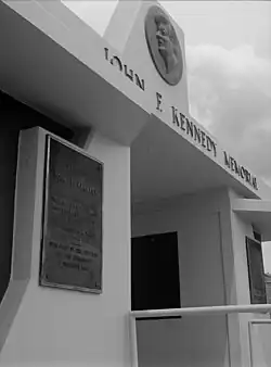 9. ^ John F. Kennedy Memorial (Plaque on Memorial Structure). Sullivan Field, Los Alamos High School. December 4, 1964. In Memory of John F. Kennedy, the 35th President of the United States of America and the first President to visit Los Alamos, New Mexico on December 7, 1962. Dedicated by the citizens of this community December 6, 1964
