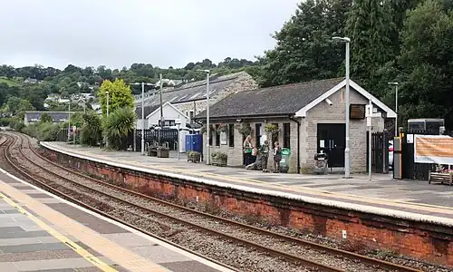 Lostwithiel railway station (Cornish: Lostwydhyel) serves the town of Lostwithiel in Cornwall, England. It is 277 miles 36 chains (277.45 mi; 446.5 km) from the zero point at London Paddington measured via Box and Plymouth Millbay.[1] Great Western Railway operates the station along with every other station in Cornwall.