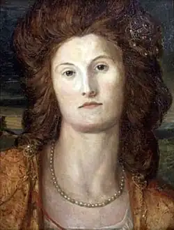 After a year of ill health, Lord Ashburton died in 1864.[1] Lady Ashburton subsequently had an intimate relationship with the American sculptor Harriet Hosmer,[12][13] whose studio she first came to in the spring of 1867.[12] Hosmer recalled being immediately smitten by Lady Ashburton's "statuesque beauty" and compared her to a goddess, writing, "There was the same square-cut and grandiose features, whose classic beauty was humanized by a pair of keen dark eyes."[14] Lady Ashburton ordered several pieces of Hosmer's work and soon became a patron.[15][16] The relationship changed from friendship to romance in the spring of 1868 when the two took a trip to Perugia, Italy.[17]