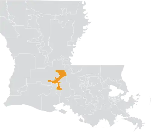 The district overlaps with Louisiana's 3rd, 4th, and 6th congressional districts, and with the 38th, 39th, 40th, 41st, 44th, 46th, and 96th districts of the Louisiana House of Representatives.[4]