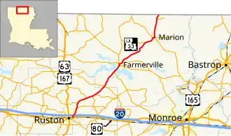 La 33—From a junction with La-US 80 at or near Ruston to a junction with La 15 at or near Farmerville and from a junction with La 2 at or near Farmerville through or near Marion to the Arkansas State Line.