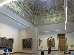 The Cabinet du Roi consisted of seven rooms west of the Galerie d'Apollon on the upper floor of the remodeled Petite Galerie. Many of the king's paintings were placed in these rooms in 1673, when it became an art gallery, accessible to certain art lovers as a kind of museum. In 1681, after the court moved to Versailles, 26 of the paintings were transferred there, somewhat diminishing the collection, but it is mentioned in Paris guide books from 1684 on, and was shown to ambassadors from Siam in 1686.[33]