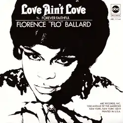 "Love Ain't Love" is the second solo single released by singer Florence Ballard, shortly after her departure from The Supremes. Robert Bateman, who produced both sides of the single,[1] was familiar with Ballard, having "discovered" The Primettes (who would later become The Supremes) at the Windsor Festival and attended their Motown audition.[2]