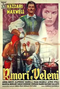 Love and Poison (Italian: Amori e veleni) is a 1950 Italian historical adventure film directed by Giorgio Simonelli and starring Amedeo Nazzari, Lois Maxwell and Marisa Merlini.[1] It was released in America in 1952, and is sometimes dated by that year. The film was shot at the Cinecittà Studios in Rome.