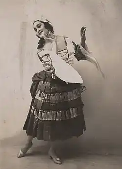 She appeared in leading roles in ballets by Fokine such as Carnaval, Petrushka and Scheherazade. She also performed in Nijinsky's Jeux and Diaghilev's The Sleeping Princess.[2]