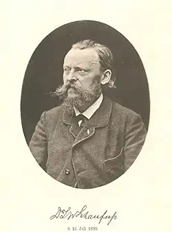 Ludwig Wilhelm Schaufuss (24 August 1833, in Greiz – 16 July 1890, in Dresden) was a self-taught German natural scientist. He worked as a researcher mainly in zoology (entomology) and he discovered unknown insects mainly Coleoptera. Ludwig Schaufuss mastered taxidermy under Oskar Klocke. In 1857 he purchased the Klocke dealership and sold with his wife animal preparations and educational materials worldwide at first under the name E. Klocke. Schaufuss owned and edited the entomological magazine Nunquam Otiosus. His son Camillo Festivus Christian Schaufuss, also an entomologist, took over the dealership in Dresden.