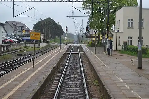 Luzino is a PKP railway station in Luzino (Pomeranian Voivodeship), Poland.