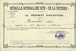 - ^ Champenois, Marc (24 December 2011), "Médaille interalliée dite Médaille de la Victoire", France-phaleristique.com (in French), retrieved 6 June 2011