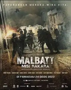 MALBATT: Misi Bakara (English: MALBATT: Bakara Mission) is a 2023 Malaysian Malay-language military war action film directed, produced and screenplay by Adrian Teh. This film stars Bront Palarae, Shaheizy Sam, Hairul Azreen, Zahiril Adzim, Iedil Dzuhrie Alaudin, Adlin Aman Ramlie, Fauzi Nawawi, Tony Eusoff, Syazwan Zulkifly, Dafi Ismail Sabri, Taufiq Hanafi, Nafiez Zaidi, Dini Schatzmann, Gambit Saifullah, Theebaan G, Safwan Nazri and Ikhram Juhari. It is based on the true story of a Malaysian military operation to help rescue US Rangers trapped in a civil war in Somalia in 1993. The film was released on 24 August 2023 in Malaysia and Singapore.