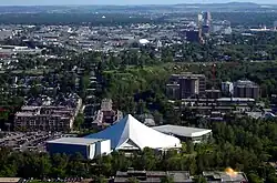 The original tensile roof on the MNP Community & Sport Centre was constructed in 1983 and remained in service longer than anticipated. After a two-year review regarding options for the existing roof, City Council approved funding for a new-and-improved roof system. While maintaining the original roof's profile, the new roof system made use of new materials such as Nanogel aerogel thus providing better insulation and energy efficiency while also allowing a significant amount of light to filter into the building's interior.[3][4]